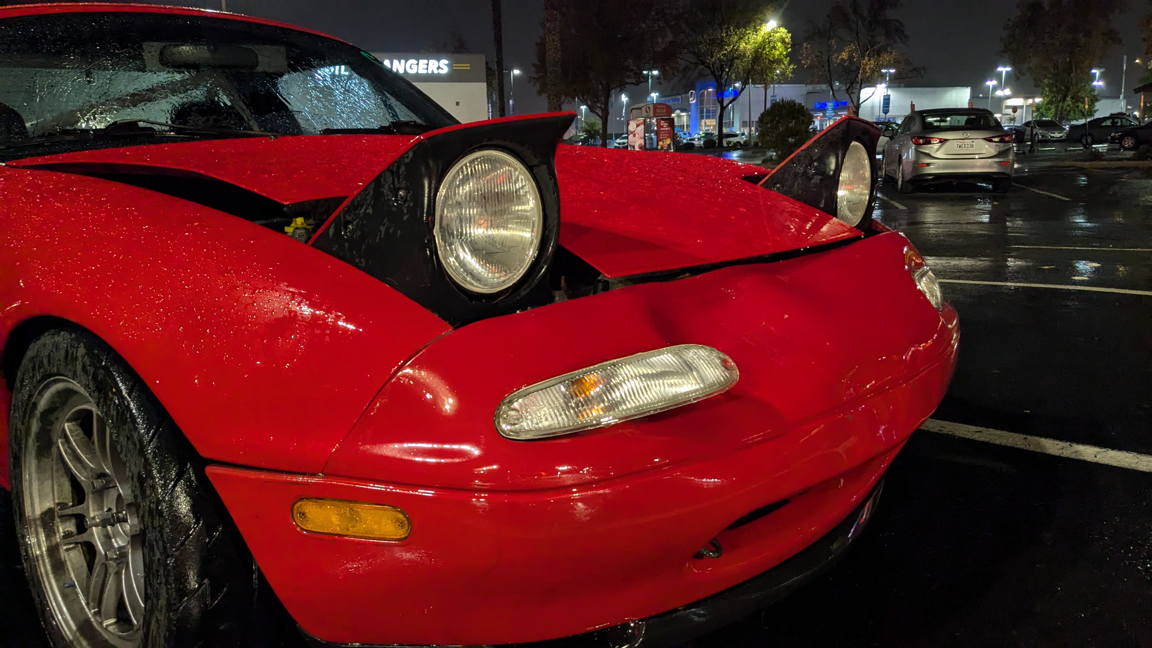This unfortunate series begins with an unintentional collision on the way to Miata Reunion. A combination of bad weather and less than stellar tires lead to an impact with a Ram 1500 in traffic in due to a yellow light.