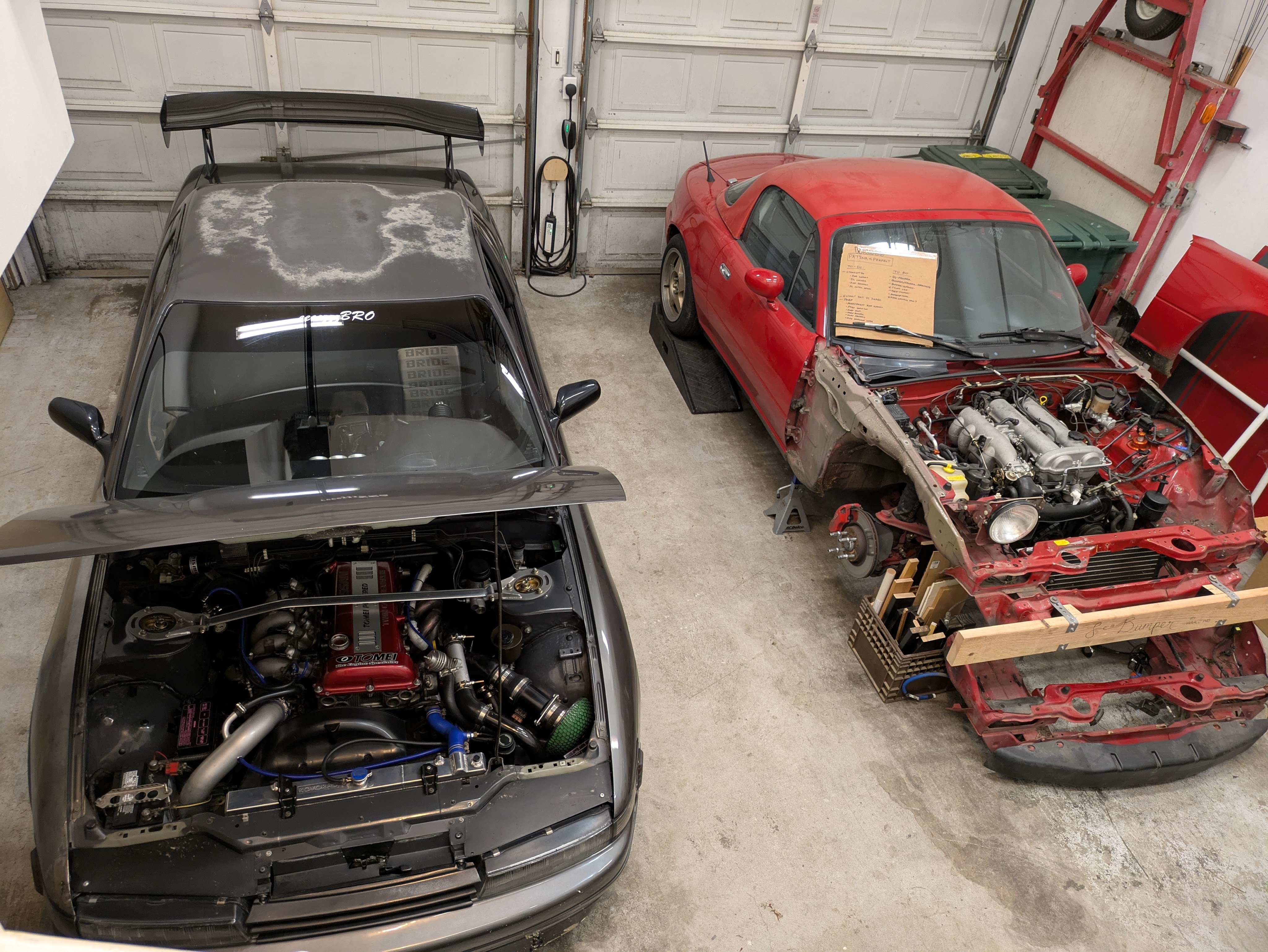 After a few weeks and some creative carpentry, Team Unemployment (my sister and father) had a large improvement over the previous damage. While some aspects of the core support were still out of plane, it was a hell of a lot better than what we started with. This, unfortunately for compounding factors, was where the project stalled at for a few months. Between life, my collarbone, and changes within the family, the Miata was backburned pretty hard. All of the parts were there, just not a whole lot of motivation, nor a clear next step. I’d even begun robbing it of some of its easily accessible parts for other projects. Poor thing.