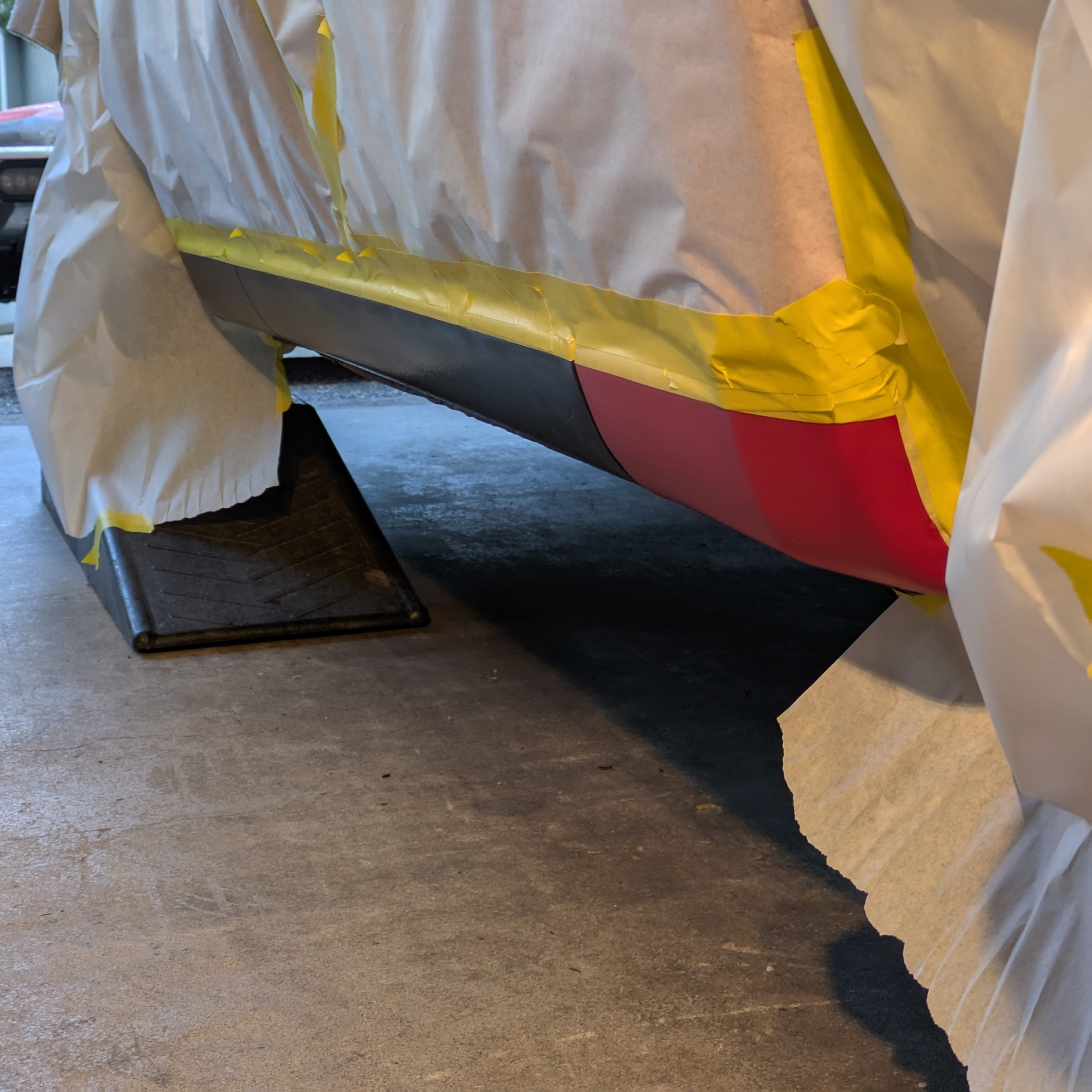 After prepping the entire rocker panel, including scuffing up my brand new baby soft paint, and a precise masking job, we were ready to spray.