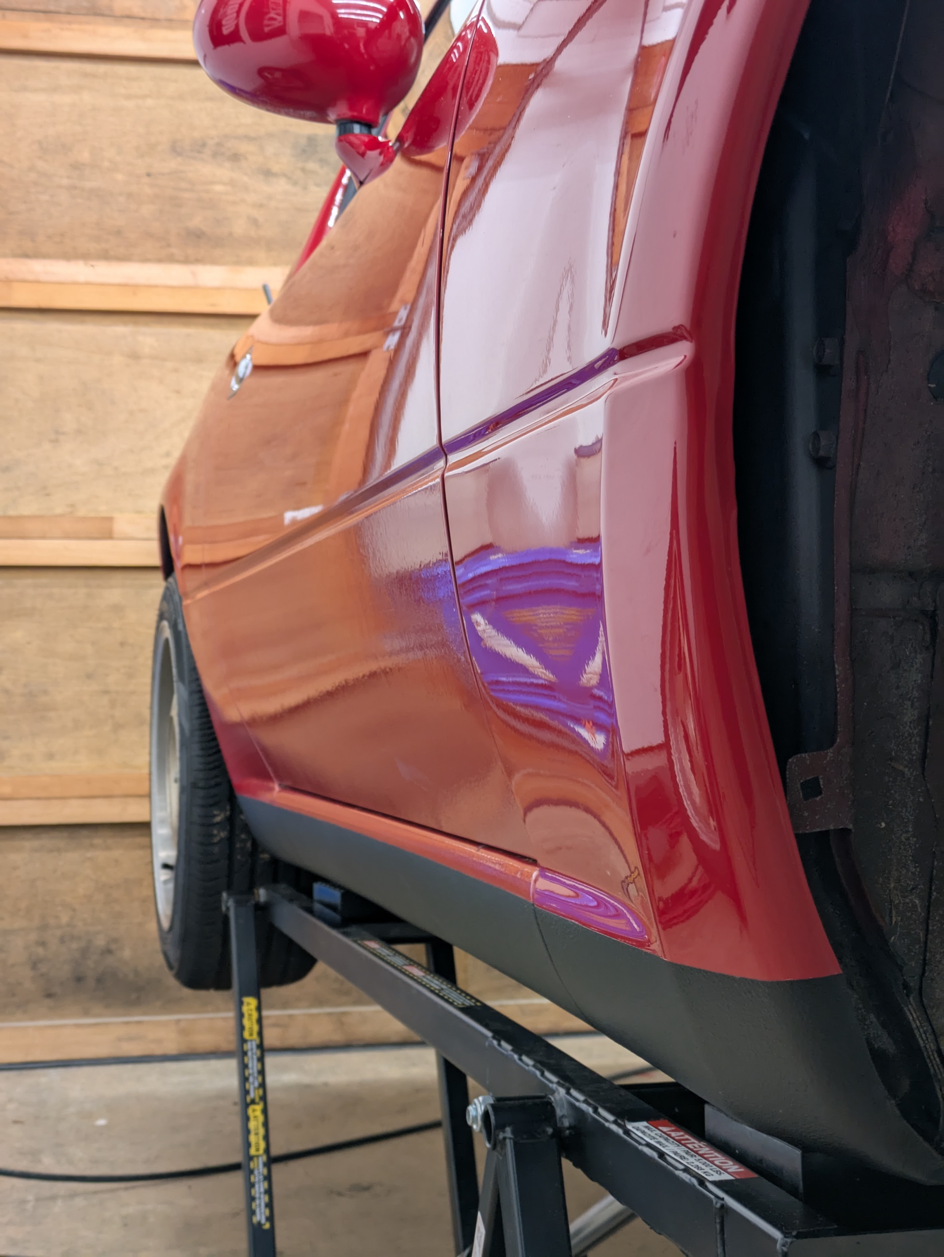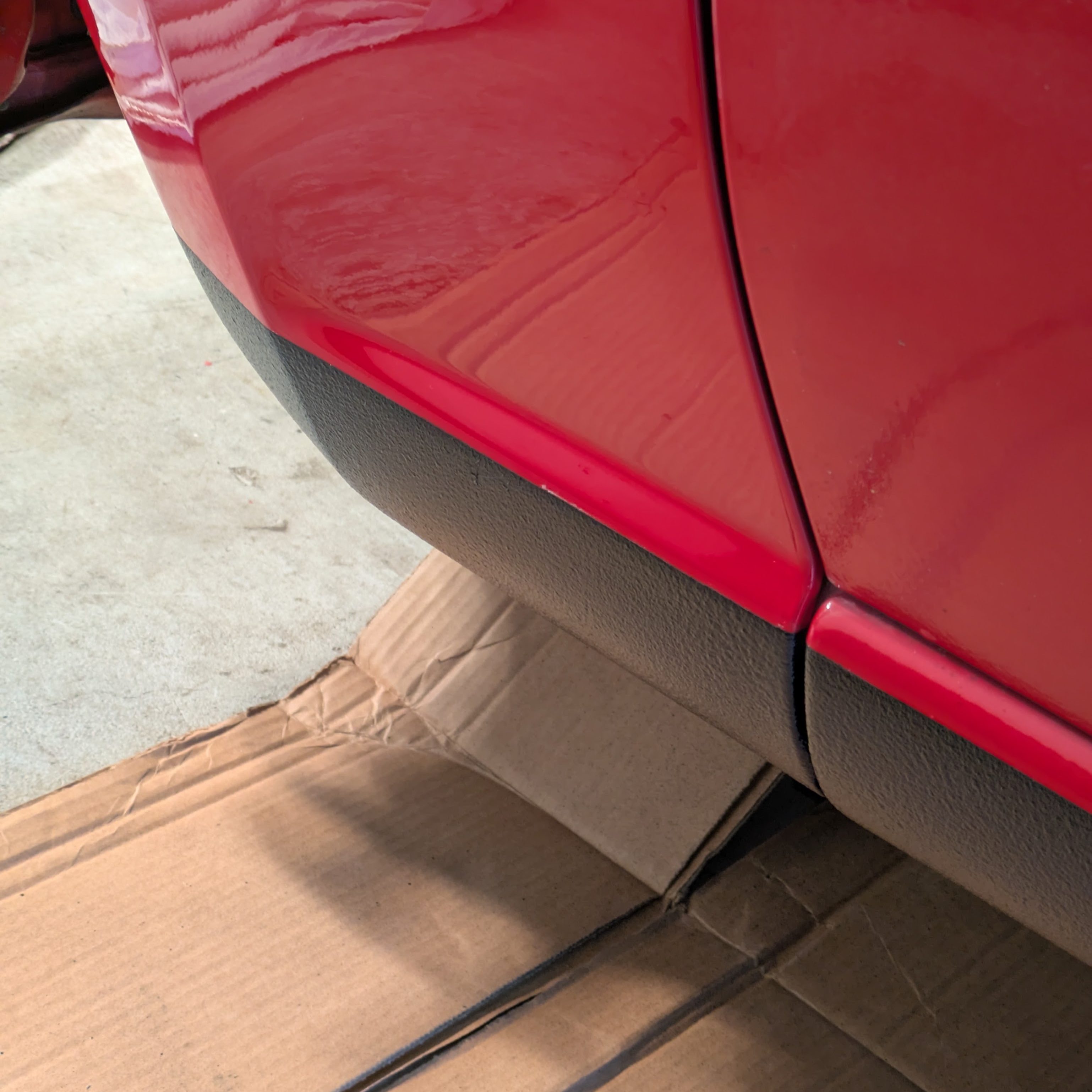 The final step of the day was one I was anxiously awaiting. Those familiar with Miatas (and a lot of 90s cars frankly), are aware of the factory rockers being textured and painted black to hide abrasion from road sediment. While my new fenders didn’t have the texture coat below the body line in the door (probably could have had Paint Juan do this, but this job already overran what he thought it would in time and materials, and I have a lot of respect for his time and talent). What I wasn’t willing to compromise on was the visual disturbance of not having the black rocker on the new fender. However, I wanted it all to match, so that was going to involve redoing the entire rocker.