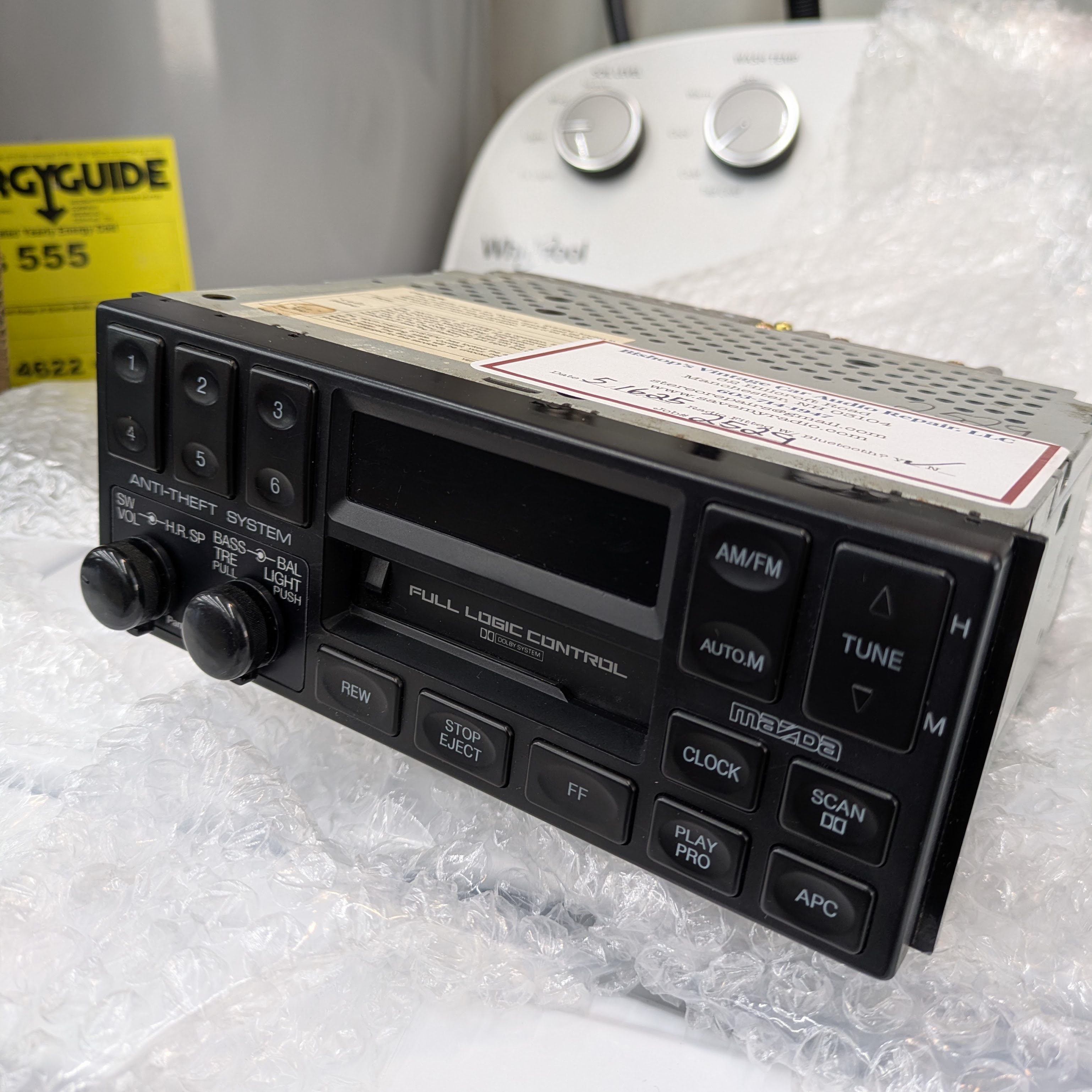 Luckily for me, there was a new kid on the block, by the name of Brandon Bishop. He runs a service called Bishop’s Vintage Car Stereo Repair. He has rebooted publicly available vintage radio repair as a side hobby, with a specialization in Mazda (although he has done others). While he is very up front that he is no Jeff Anderson in terms of electrical engineering wizardry, he has gone to great lengths to keep these old belted machines going, and I love supporting those niche services. His full rebuild service includes belts, bulbs, capacitors, and any other wear items along with the necessary adjustments. He also had a batch of faceplates remade that he offers as part of his service to others to freshen up the cosmetics. While mine was in excellent shape given the miles of the car, he had two critical things I wanted: repair to have my cassette deck back, and integrated Bluetooth(!!!!!!!!!!!!!!!).