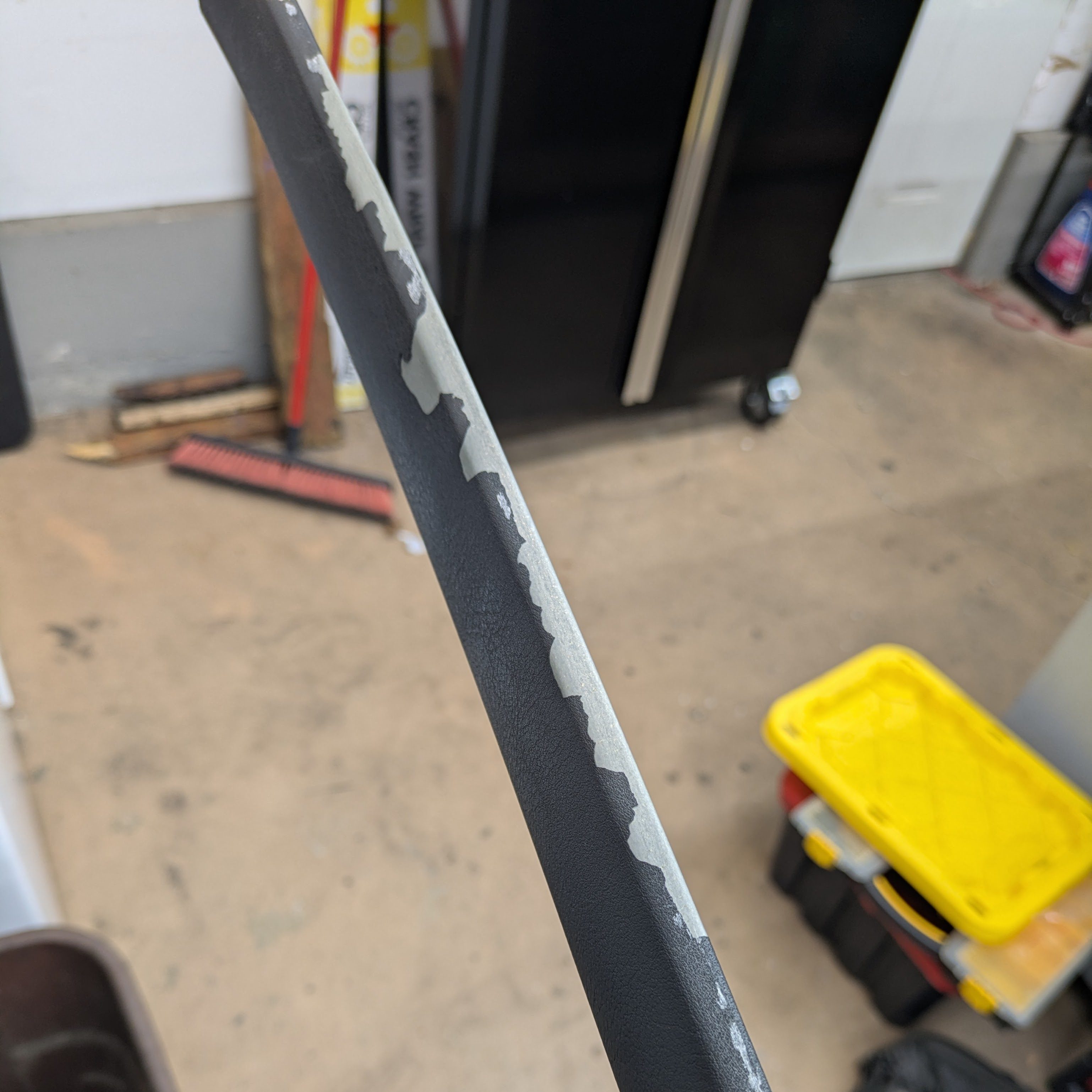 The 3rd brake light was affixed to the rear headliner trim retainer, and as 35 year old finishes go, it came off with the glue on the LED strip. I fully stripped it so I could paint it before reinstallation. I could have vinyl wrapped it, but as it won’t see a ton of UV, paint was going to be fine.