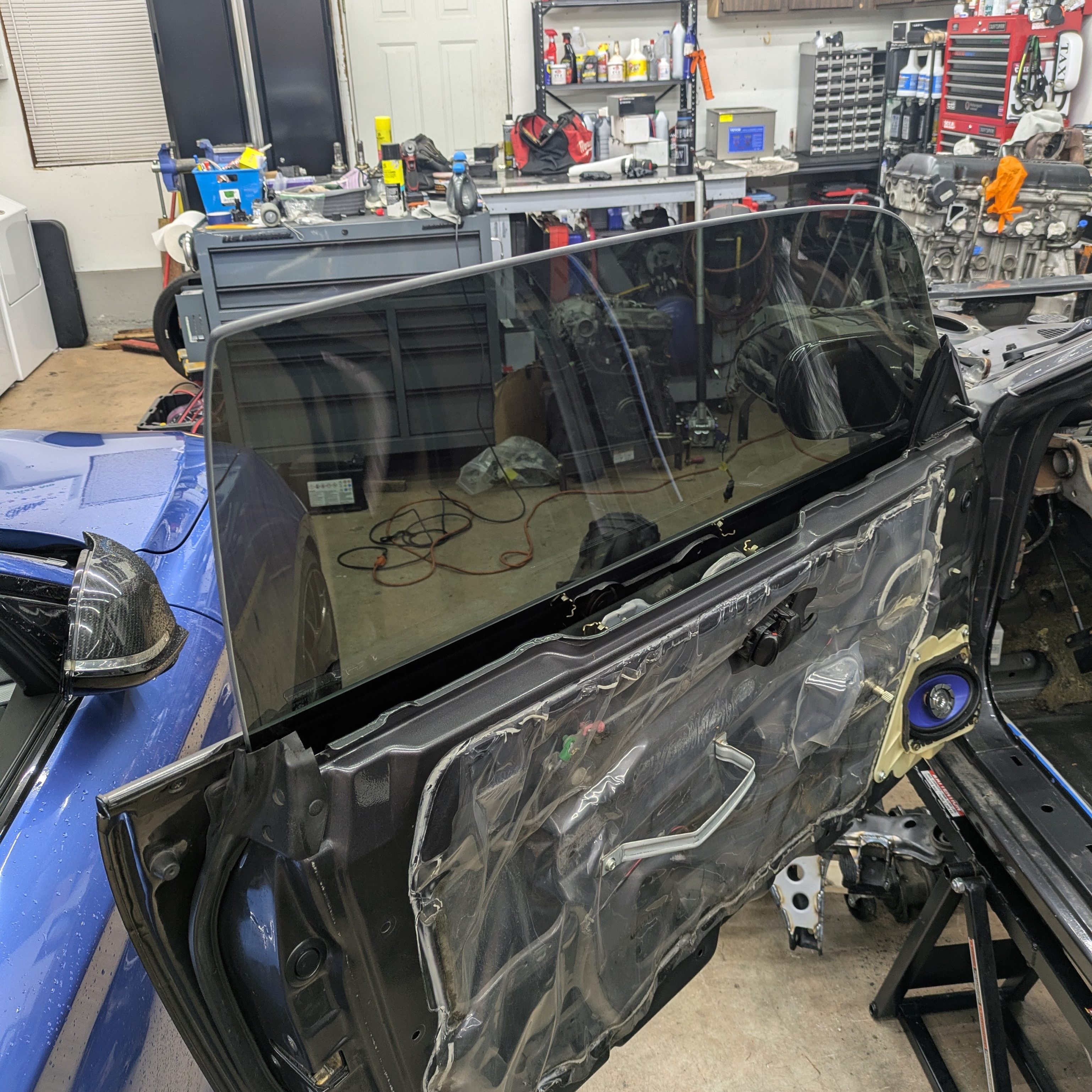 Next up, it was time to address the tint. I knew I was at a crossroads with having all of the interior and cage out of the car, and I elected to remove it despite it being in good condition. It was 20%, and looked appropriate on the car, but I just prefer clear windows, especially on a 90s car with a big greenhouse. Additionally, the car still has a factory windshield in it, and I love nothing more than a matching windshield tint to the rest of the glass. This was a rare opportunity to flex that, so I fired up the steamer and the tint came off.