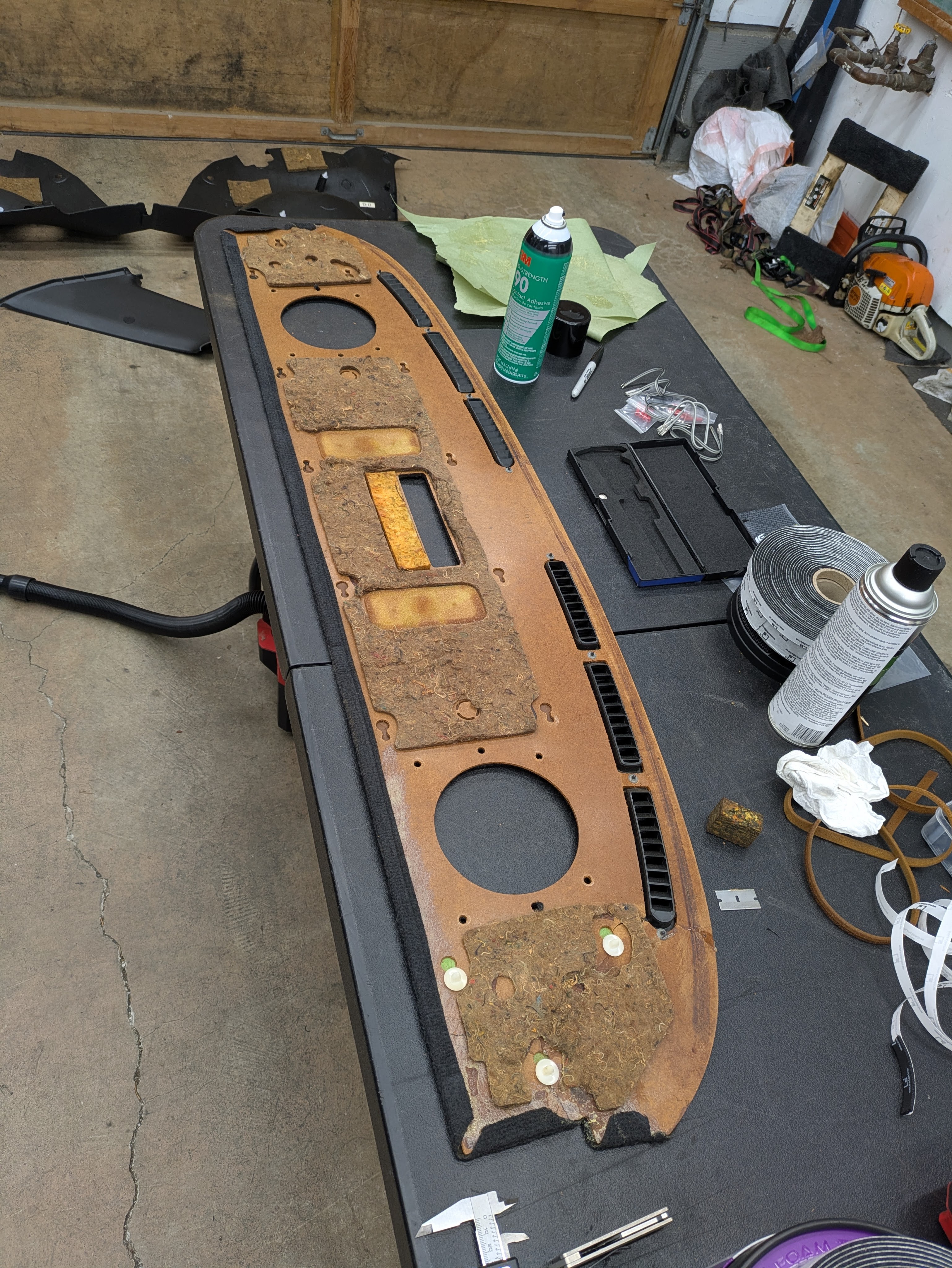 With the gigantic projects complete, it was time to begin reassembly. Once again, a significant effort has been made to “modernize” the car in terms of cabin refinement, so I spent a while taping every single clip connection and panel joint with Tesa felt tape. This was a fairly small amount of actual effort, but hopefully will minimize or eliminate any chance of rattling.