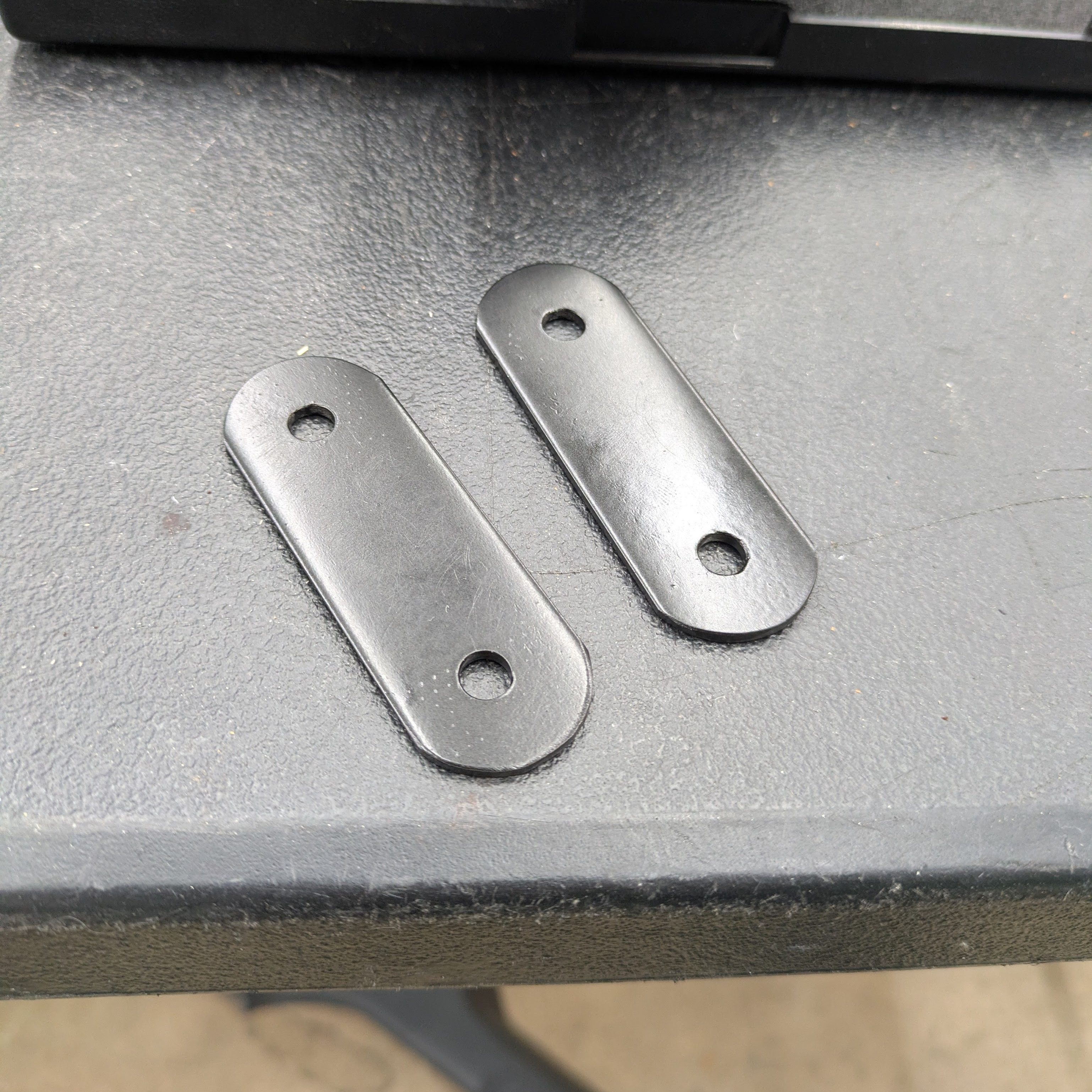 These are 4340 Chromoly S13 to S14 belt seatbelt standoffs that I made at work on a lunch break. The taller one is to space the top belt eyelet off the pillar, with the small boss off the front being the correct diameter and depth to still allow the eyelet to rotate even when the bolt is tightened down. The smaller one serves a similar purpose for the lower attachment point on the rocker panel. These fit on the first try, so I duplicated them during the next day’s lunch. A 3D printed test fit would have been wise, but since measuring metal parts is part of what I do for a living, I had confidence that they would just work, which they did.