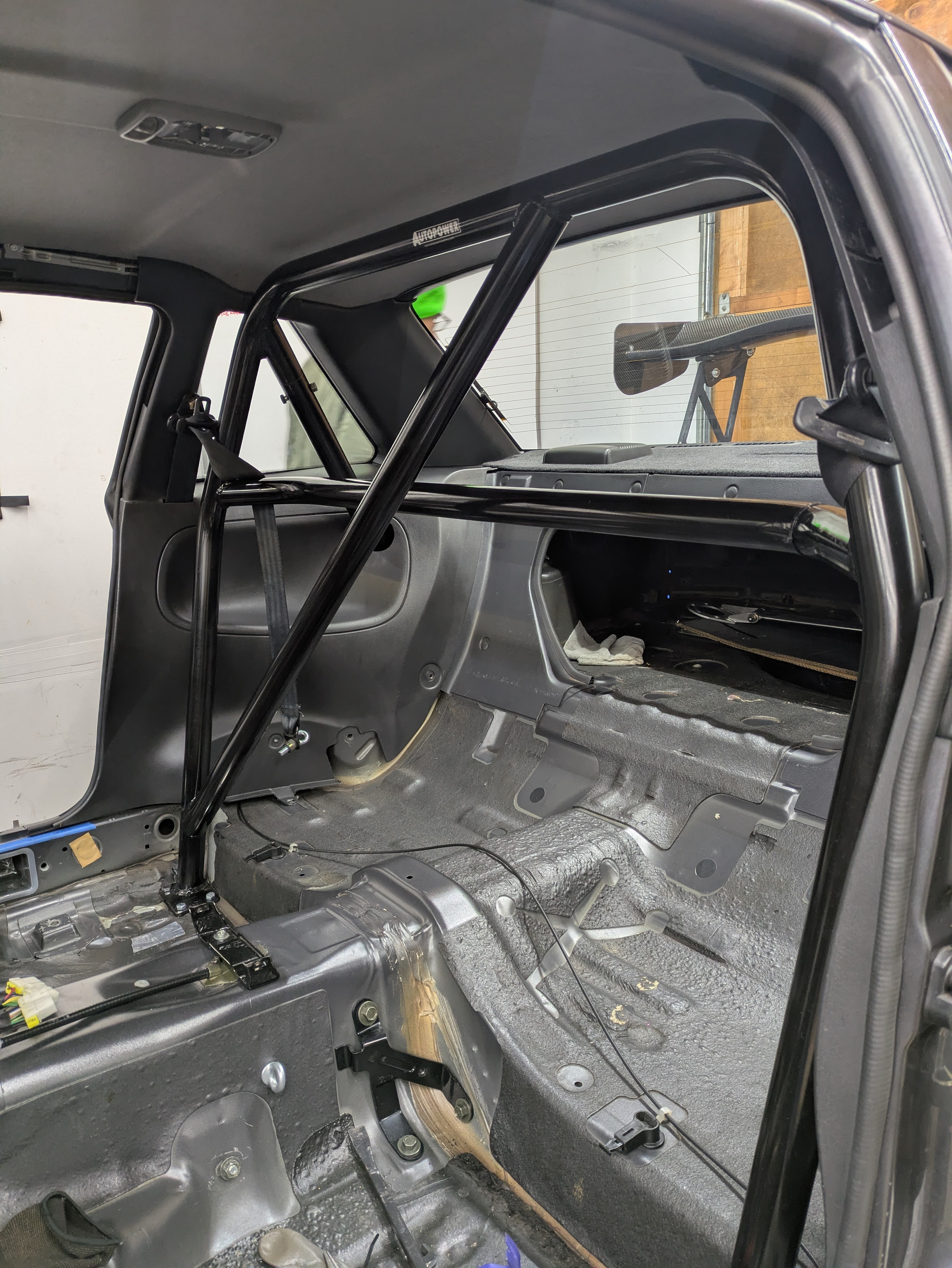 The install went pretty smooth overall. The only in-process photo that I have is one that Kai took of me looking like a sad dog while tightening wheel well bolts. My father and Kai both helped a ton as this job requires a minimum of two people, but it was definitely nice to have three. The cage slid in right where it wanted to be, even with the rear interior panels hooked around the bars, and it only took minor persuasion to get everything back to where it wanted to be. Tightening the bolts from the wheel well to the interior was less than fun, but it got done with the power of 30/60 degree open ended wrenches and a magnet. We were able to orient all of the bolts from the outside in, which not only looked nice, bit it also meant there were no bolts protruding into the wheel well so I don’t have to worry about hitting them with the tire.